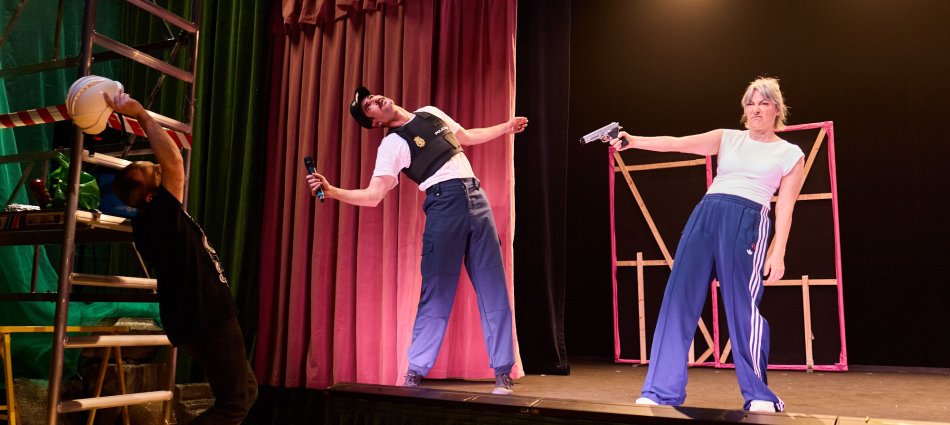 Con estas palabras, Cris Blanco, inicia su nota en el programa de mano… Y el espectáculo, que critica también formatos de teatro popular que a veces nos confunden, se sumerge en un laberinto sin salida, una propuesta en bucle sobre el juego de espejos deformantes en los que no descubrimos exactamente la frontera entre la verdad y la mentira. Disparate ficcional que juega a encubrir otras formas de confundir y divertir al público.