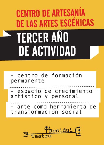 El Centro de Artesanía de las Artes Escénicas, un proyecto de Residui Teatro, es un espacio con tres salas de ensayo, un escenario “íntimo”, conexión wifi y un taller que busca completar la oferta lúdica con presentaciones para todo público y formativa con charlas, talleres y cursos.