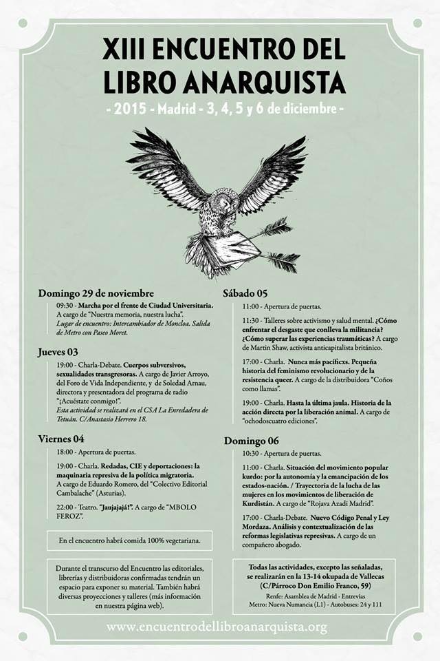 Esta entrada fue publicada el 19 de octubre de 2015 por querevientenlosartistas. Se archivó dentro de EVENTOS Y ACCIONES ESCÉNICAS y fue etiquetado con XIII ENCUENTRO DEL LIBRO ANARQUISTA.