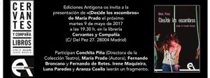 Esta entrada fue publicada el 8 de mayo de 2017 por querevientenlosartistas. Se archivó dentro de EVENTOS Y ACCIONES ESCÉNICAS y fue etiquetado con Presentación de (Des)de los escombros.