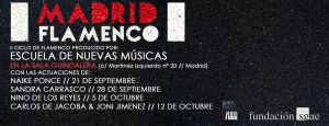 Organizado por la Escuela de Nuevas Músicas y promovido por la fundación SGAE, después del éxito del I CICLO MADRID FLAMENCO de la temporada anterior, comenzamos un segundo ciclo: