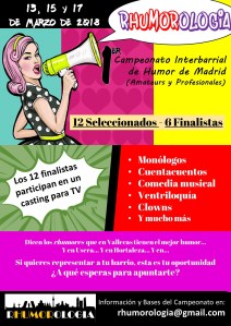 Abierta la Convocatoria para “RHUMOROLOGÍA”, Iº CAMPEONATO INTERBARRIAL DE HUMOR DE MADRID, organizado por Productos Cultural.es, en colaboración con la sala “De modestia…na”.