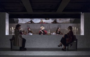 Luis Buñuel en Viridiana sentó a unos sin techo a la mesa de la gran mansión que habían ocupado, una mesa que recordaba con gran acierto esa gran cena que todos hemos contemplado en múltiples ocasiones como paradigma de conciliación, aunque tuviese un traidor entre ellos. Ya, de manera inteligente, nos hablaba de la naturaleza humana, tan proclive a dejarse seducir por la belleza del mal. Era perturbador ver como todos podemos estar un día sentados allí con harapos y otro, con traje de seda…Y que lo que hay bajo las vestiduras, más allá de idiomas, fronteras y naturaleza, es muy parecido. En Juegos para toda la familia hay un texto y una puesta en escena transparentes, no da pie a equívocos, nos muestra las cosas como no las queremos ver, nos hace mirar lo que hay bajo la piel sensible de cada persona que es, una piedra que, con facilidad se hunde en el lodo si no se le da ocasión de sobrevivir al horror. Hay algo muy sugerente en esta pieza y es que no todos los cabos quedan cerrados y claros, hay espacios que no sabemos si forman parte de los roles del juego o son los personajes que mueven los hilos…¿Todos los que hacen el ritual al principio son «iguales» frente al juego o se parte con división de caracteres?¿Es la criada un personaje estanco que facilita la mecánica o es el rol que le ha tocado en esa partida? y, sobre todo…¿Dónde está el límite entre el teatro y la vida?. Juegos para toda la familia nos muestra lo que ocurre tras las paredes de los grandes palacios, esos donde el abuso y la especulación es el leit motiv diario, pero, sobre todo, nos hace reflexionar sobre esa «parte humana» que todos creemos tener y conservar intacta ante cualquier tentación…aunque la supervivencia a veces justifica cualquier atrocidad. Una obra que no puede dejar indiferente a nadie que la vea y que se irá tras la nuca de los espectadores durante días. Sigo pensando que, en la sala de la Princesa, es donde muchas veces veo el mejor teatro y de mayor riesgo del CDN.