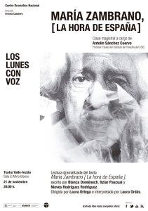 El acto se integra en las actividades de mediación en torno a “La tumba de María Zambrano” dentro del marco Los Lunes con voz. Contará con una lectura dramatizada, un diálogo multidisciplinar y un debate abierto al público.