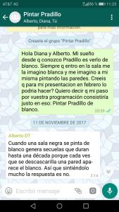 “Pradillo no se puede pintar de blanco” es la propuesta de Cuqui Jerez para el “Espacio para Compartir” del Teatro Pradillo. Una jornada que consiste en un trabajo de investigación que se presenta al final de un periodo de tiempo establecido. En este caso se trata de un trabajo encaminado al uso de la imaginación, ante la imposibilidad de transformar el espacio de negro a blanco. Para ello se nos invita a jugar con los ojos cerrados y adentrarnos a un espacio completamente cubierto por folios en blanco y con unas nuevas posibilidades cómo: la composición atmosférica que crea la luz bajo esta base, el uso cromático de los colores y su propia distribución. Un trabajo que nos acerca a las posibilidades que nos ofrecen el blanco y el negro, y de cómo esta se ven reflejados en los cuerpos que la habitan.