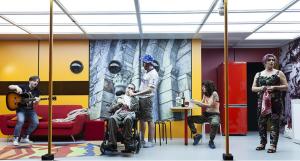 “Divinas Palabras. Revolution” es la propuesta que actualmente podemos ver en el Teatro Español. Se trata de un viaje atemporal que recorre los días de hoy, bajo la atenta mirada del pasado. Valle-Inclán deja un legado de historias monstruosas, historias que parecen sacas de un libro viejo y olvidado. Cuando uno se adentra en sus páginas toma conciencia de que lo que fue sigue siendo y lo que creímos una victoria sigue siendo una guerra. El esperpento, esa idea literaria tan teatral, sigue encontrando una sociedad que lo acoge y lo eleva a la máxima admiración. La revolución fantasma que creemos vivir se encuentra de frente con realidades como esta, presentadas de manera grotesca y real, bajo la idea de obra teatral.