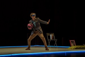 Juan Mayorga es el autor contemporáneo que con más asiduidad estrena en nuestras carteleras. Ahora presenta Intensamente azules en el Teatro de la Abadía. De nuevo, fabula sobre su vida a partir de una anécdota sencilla que le haya ocurrido. Como las grandes tragedias o comedias, un simple acontecimiento; en este caso, tener que enfrentarse al mundo con unas gafas de natación, provoca que el día a día de un giro de ciento ochenta grados y todo se vea de otro color, en este caso azul. Los pequeños acontecimientos diarios, los pensamientos profundos, todo se ve más transparente con esas gafas… El público ríe porque siempre es grato ver al hombre normal en medio de grandes catástrofes.