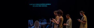 Comunidad3s es una propuesta que aúna todos los lenguajes de teatro inmersivo y participativo que tan de actualidad están hoy en día. Si metemos en una batidora un poco de propuesta escape más unos toques de teatro virtual y una pizca de aportaciones biograficas de los asistentes, se genera una partida por relevos en la que grupos formados en la nube, ante la huida de la difunta Tierra a un nuevo planeta, tendrán que comunicarse y realizar tareas para sobrevivir y no ser expulsados del ¿paraíso?…Esa mecánica parece que ha sido el eje del proceso de esta propuesta que ubica al espectador en el luhar de protagonista y deja la catársis desde la escena instalada en la pantalla de un móvil. Por suerte, al final, se recupera el rito, esencial para la evolución del ser humano.