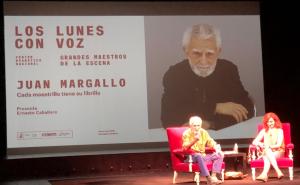 Hay hombres y mujeres de teatro que cuando se hacen mayores, envejecen…y los hay que conforme pasa el tiempo, se rejuvenecen. Entre estos últimos está Juan Margallo que acaba de publicar sus ¿memorias?…Este hombre, un referente, aunque a él no le guste oírlo, para la profesión, ha ido acumulando experiencias y anécdotas con las que disfruta al narrarlas y hace sonreír cada vez a quien le escucha, aunque ya se lo hubieran oído con anterioridad. Ahora puede permitirse el lujo de olvidarse del tiempo para detenerse en aquellos recuerdos que rememora con felicidad, sin amargura. Es un lujo tener a alguien como él en nuestra profesión, alguien a quien admirar y respetar…Alguien que es capaz de poner como título a sus memorias…»Vivir del aire». Hoy le hemos disfrutado en el ciclo LOS LUNES CON VOZ del CDN.