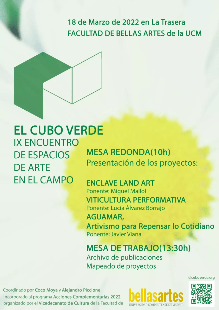 IX Encuentro del Cubo Verde @redcuboverde , Red de Espacios de Arte en el Campo. Tendrá lugar mañana viernes 18 a las 10h en la Facultad de Bellas Artes (Universidad Complutense).
