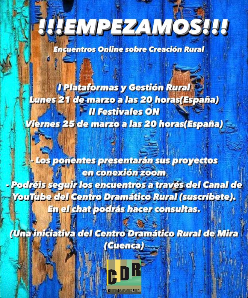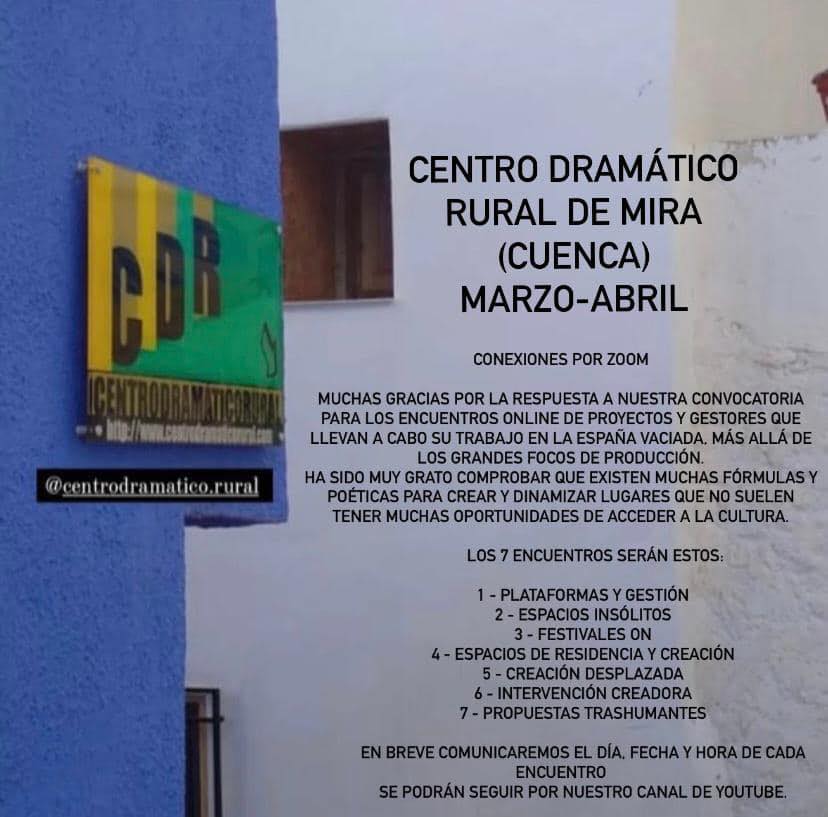 ENCUENTROS ONLINE DE CREACIÓN RURAL ORGANIZADOS POR EL CENTRO DRAMÁTICO RURAL DE MIRA (CUENCA)