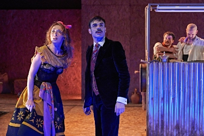 En la sala Tirso de Molina hay un tríptico que contiene «El disfraz, las cartas y la suerte». Cada pieza se instala en un estilo diferente. El disfraz, la primera, es un melodrama musical con un ritmo trepidante que mantiene la atención del público durante el juego de cambios de roles sociales. Las cartas es un monólogo que nos sumerge en las peripecias de una mujer casada y engañada, durante casi una hora, la actriz muestra sus miedos y deseos en escena. La última, La suerte, en un diálogo sumergido en una atmósfera sonora que nos lleva a la Galicia profunda, para descubrir lo que la avaricia puede producir al ser humano. Las tres piezas solo tienen como denominador común el espacio escénico, tal vez habría funcionado mejor la primera en un programa y las otras dos en otro ya que las dos horas y media sin descanso que duran las tres hace perder la atención a partir de la segunda.