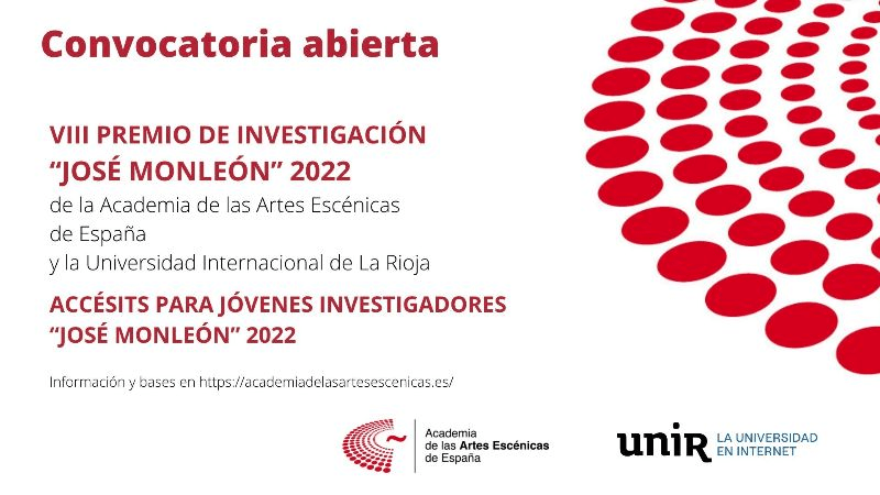Abierta la convocatoria del VIII PREMIO DE INVESTIGACIÓN “JOSÉ MONLEÓN” 2022 de la Academia de las Artes Escénicas de España y la Universidad Internacional de La Rioja