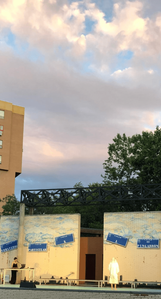 Al re-enviar a mi correo una de las fotos que hice anoche en la función, he puesto en el asunto: «Luz en el pozo». Y si, la referencia está bien porque la función se realizó en el Auditorio del Pozo del Tío Raimundo, un lugar para la cultura que está visibilizando 21 Distritos y que está incrustado entre edificios. Durante la función no pude dejar de contemplar la composición espacial que resultaba de los edificios de viviendas con los árboles y el cielo abierto. Un lugar extraño y frío para una pieza ritual como la que interpretaron Luz Arcas y Le Parody y, sin embargo, poco a poco fue desapareciendo todo ese artificio exterior para concentrar nuestra atención en ese viaje de fusión de cuerpo y sonidos. En esta pieza que parece una jazz sesión de música contemporánea con aroma tradicional que inspira al imaginario de Luz para generar sensaciones dolientes que se quedan suspendidas en el aire mientras atraviesan nuestro pecho. Y así, gracias de nuevo al rito en vivo…»La luz inundó el pozo».