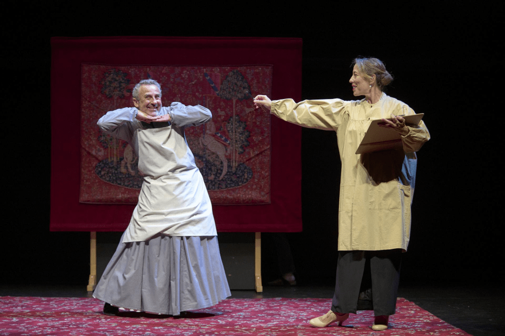 Y digo de Paco Mir aunque la gran mayoría del texto sea de Lope de Vega porque la versión, a partir de una excusa habitual en teatro: La compañía que no llega a tiempo y han de realizar la representación los técnicos o cómicos que no son de la compañía titular. Paco Mir concentra la trama en lo esencial y el resto lo deja en la narración de los actores. Sin apenas medios, con lo esencial y, sobre todo, con dos actores y dos actrices excelentes, viajamos por los tres actos disfrutando de «juego teatral» constante. Porque el teatro es, en esencia eso…juego y cuando lo hay en grandes cantidades, se vuelve una delicia para el público y todos disfrutamos de errores, tropiezos y disparates. Una maravilla de comedia.