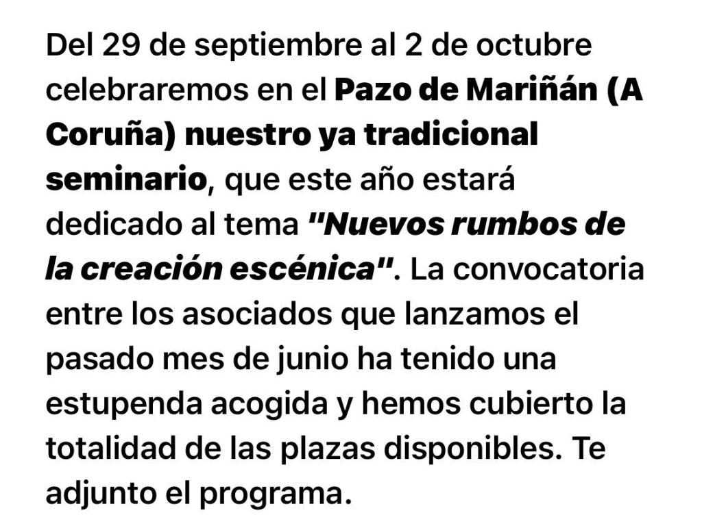 Seminario «Nuevos rumbos de la creación escénica» en el Pazo de Mariñán, organizado por la Asociación de Directores de Escena