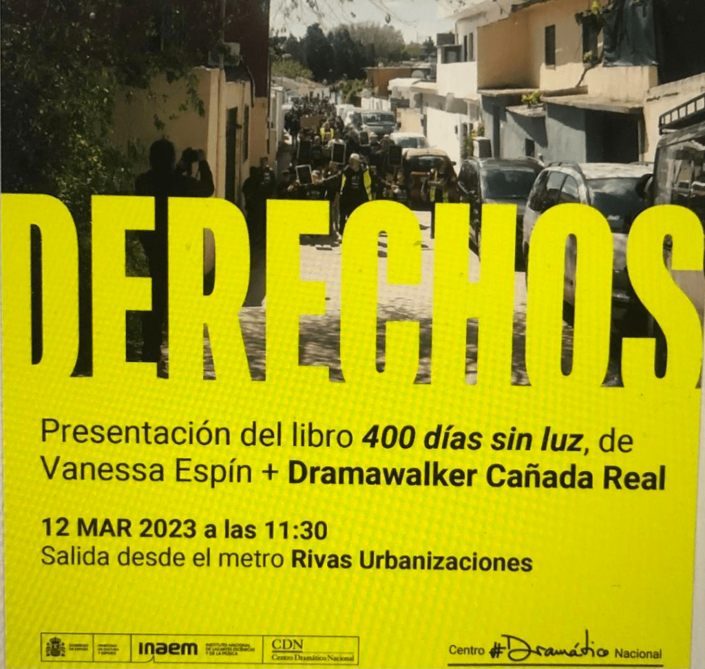 Únete al #Dramawalker por el barrio donde, además, presentaremos el texto de la obra #400DíasSinLuz«, una conmovedora crónica de la vida cotidiana de los habitantes de la Cañada Real. 📖