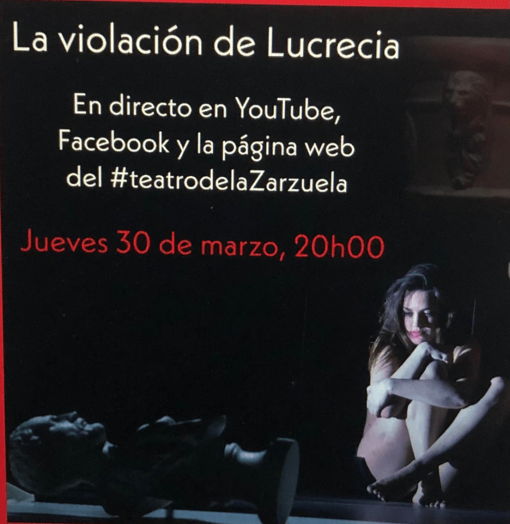 ‘La violación de Lucrecia’ de #josedenebra en directo y en abierto en nuestro canal de YouTube, nuestra cuenta de Facebook y nuestra página web 🌐😃 En tu smartphone, en tu tablet, en tu ordenador, en tu tele… El jueves 30 de marzo a las 20h00👏😍