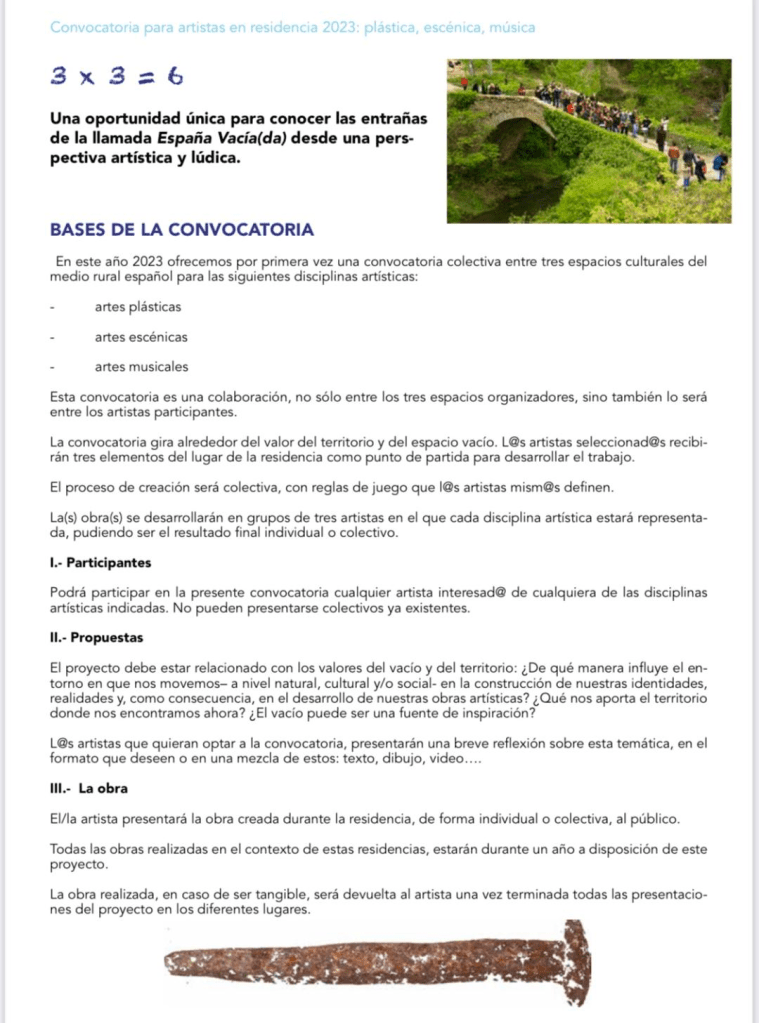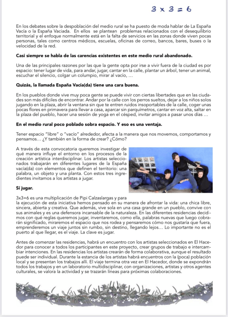 3 x 3 = 6, una convocatoria para creadores contemporáneos, impulsada por El Hacedor de Imágenes y Palabras, La Casa del Burro y el Centro Dramático Rural.