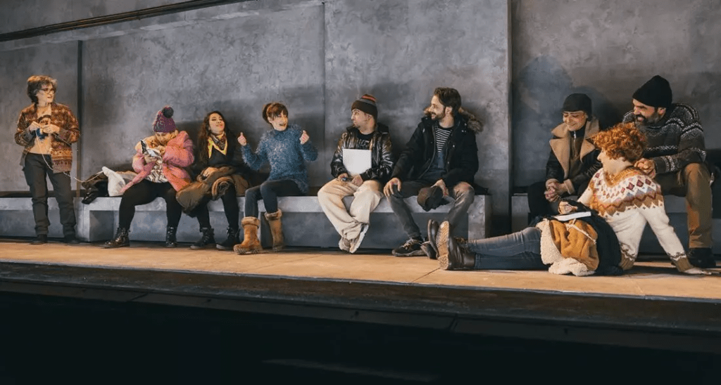 ¿Qué se puede hacer ante el horror de una guerra desde nuestras cómodas casas?¿Deprimirse y lamentarse?… ¿Se puede combatir sin armas?¿Se puede huir de los bombardeos a través del arte?. Creo que estos debates éticos están detrás de la obra, aunque a nosotros nos llegue como un gran disparate que podría firmar los Hermanos Marx. El teatro ha sido útil a lo largo de su historia porque pone al ser humano frente a sus miserias, para intentar resolver las grandes sombras que le acompañan. Y también sirve para gritar contra las injusticias. Esta obra podría haber sido un gran drama trágico que nos mostrase la «realidad» de lo que está ocurriendo en Ucrania…No tengo claro que de ese modo el público estuviese disponible para acudir a ver algo que en los medios de comunicación ya nos muestran a diario. Crear un juego de teatro dentro del teatro, una gran farsa, nos permite tomar distancia sobre lo que está ocurriendo y reír ante el disparate, aunque la sonrisa se congele en nuestro labios por momentos. Empezar la obra en un refugio para terminar en una trinchera blanca es la gran metáfora que sostiene el montaje junto con los actores que se vuelvan absolutamente para llevar a cabo esta comedrama.