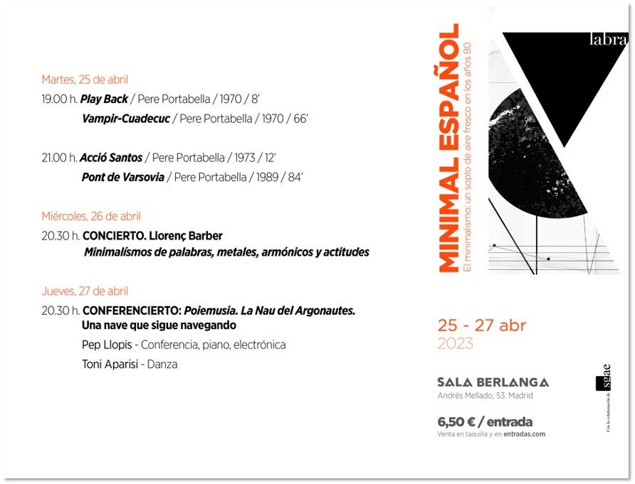 -MINIMAL ESPAÑOL. El minimalismo un soplo de aire fresco en los años 80′ – 25 al 27 de abril – Sala Berlanga