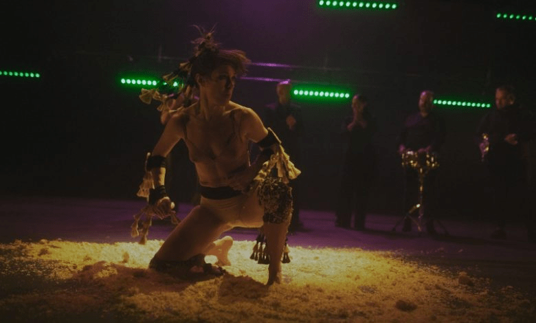 Y de repente…todo enmudece, todo desciende y nos lleva a un mundo más artificial, nos ha trasladado de un tiempo ancestral a un momento que podría ser el hoy, donde todo es más aséptico…y aún así, su cuerpo sigue como una sonámbula transitando por el escenario, sin tiempo, sin límite…