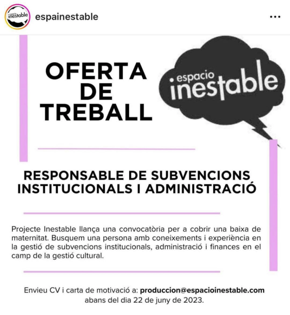Oferta de trabajo en ESPACIO INESTABLE de VALENCIA