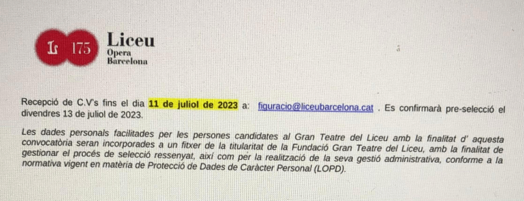 El Gran Teatre del Liceu convoca casting para seleccionar actores, actrices, niños y niñas para la ópera ‘Antony & Cleopatra’, que se estrenará en el Liceu el próximo mes de octubre. Recepción de currículos hasta el 11 de julio 2023.