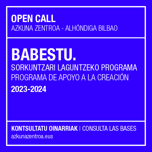 Azkuna Zentroa – Alhóndiga Bilbao, Centro de Sociedad y Cultura Contemporánea, ha puesto en marcha una nueva convocatoria de Babestu. Programa de apoyo a la creación contemporánea en el marco de su estrategia de fomento y acompañamiento a la producción artística.