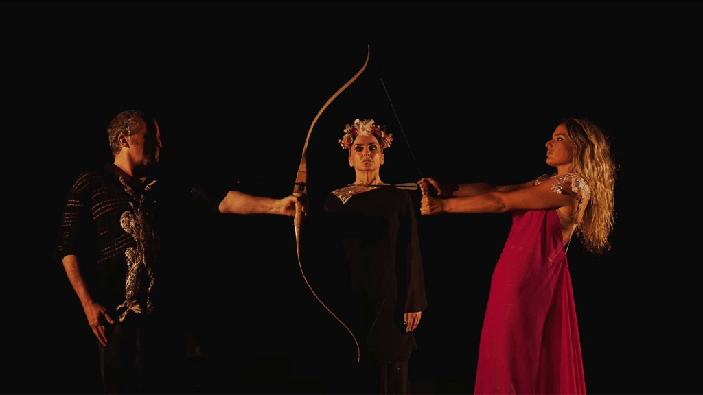 En esta versión de la Aleluya Erótica de Lorca sobre las turbulentas relaciones humanas que, como en un cóctel molotov, mezclan la dependencia, el enamoramiento, la juventud, la madurez, el sexo, la subida al cielo…la tensión de una flecha, en tres personajes de oscuro jardín que protagonizan esta historia de desamor…