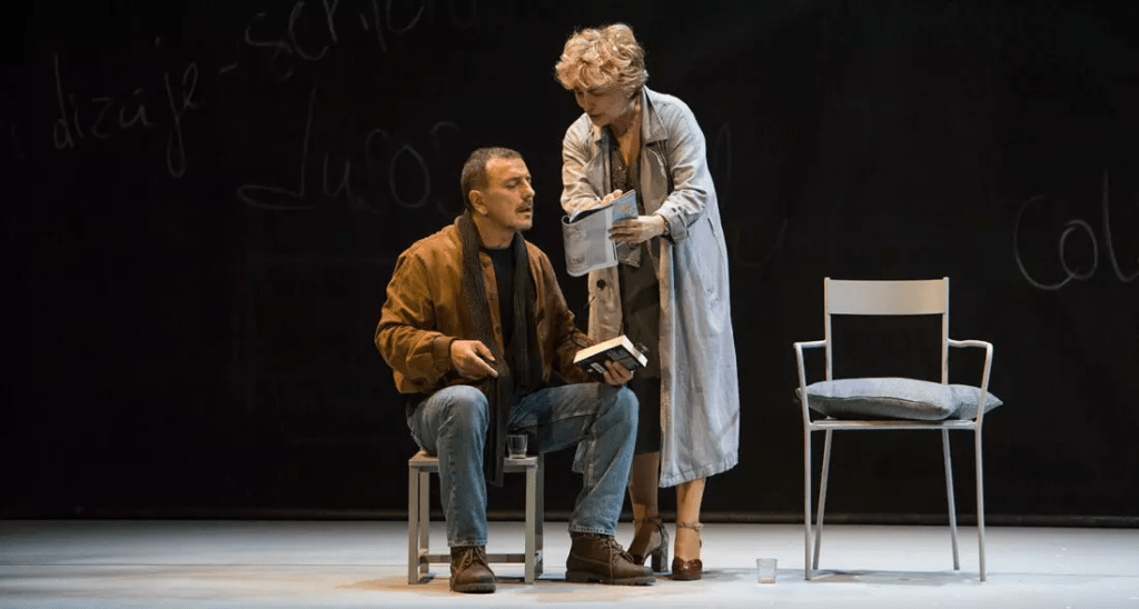 La pieza se sostiene sobre dos columnas, los dos intérpretes…Isabel Ordaz y Marcial Álvarez. Ambos realizan un despliegue emocional y técnico fantástico, el público olvida todo lo que pasa alrededor porque la historia, conducida por ellos, se convierte en un espacio para la tolerancia y la comprensión entre mundos distintos que, al final, se acercan sin remedio. Un combate dialéctico que termina en un abrazo sin límites.