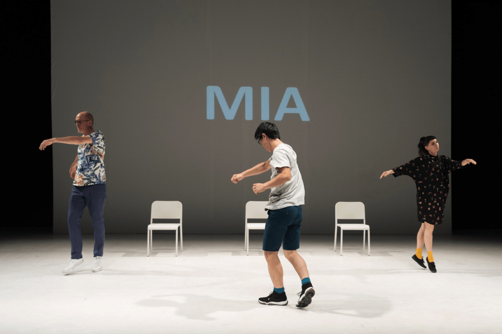 Tenemos a tres artistas sentados frente al público en sillas comunes. Hay una pared de fondo en la que se proyectarán nombres: Maya, Ruby, Tonya… viejos conocidos de cada uno de los tres presentes que, es importante saberlo, se llaman Michikazu, Frans y Elizabeth. Otro dato relevante a saber es que proceden de tres continentes distintos: el primero es originario de Japón, el segundo, de Holanda y la tercera es norteamericana.