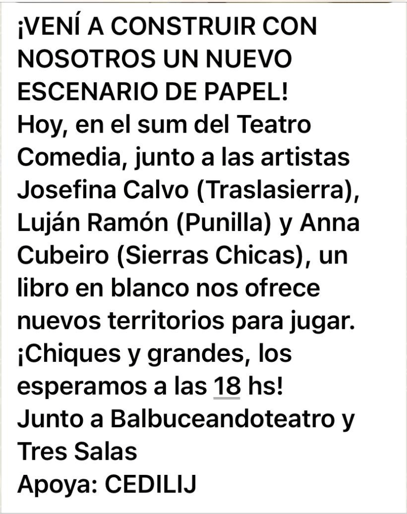 CONSTRUIR UN NUEVO ESCENARIO DE PAPEL en el TEATRO de la COMEDIA de Córdoba. Hoy a las 18 horas