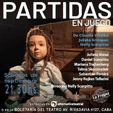 Lo más seguro de viajar a Buenos Aires es que uno encontrará buen teatro en sus escenarios, espacios insólitos que uno encuentra donde menos se lo espera, La Fragua está al fondo de un café, subiendo una escalera, un lugar en el que el tiempo se detiene para dejar que la memoria y las emociones inunden el patio de butacas. «Partidas en juego» es una propuesta compleja dramaturgicamente…la música nos recibe para ayudarnos a entrar en otro tiempo al real…y como si de un puzzle imposible se tratase, las piezas poéticas van apareciendo y desapareciendo de escena en una suerte de múltiples técnicas… texto, títeres, objetos, video…todo va sumando hasta llegar a una imagen final abierta a la esperanza.