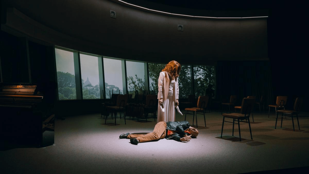 Y además de Topazia hay otros personajes alrededor de ella…personajes que no sabemos si están en sintonía con los gestos de Topazia, es como si ella necesitase convocar a otros seres para ser ella misma, para descubrir su verdadera razón de estar en el pequeño mundo que intenta inventarse… La pieza es poliédrica, con varios planos que van construyendo un universo real y ficcional… Ante nuestros ojos aparecen fantasmagorías y seres de carne y hueso…que, por momentos, se fusionan en un NO tiempo, en un extrañamiento casi abstracto… Ese que, tal vez, es el más apropiado para reconstruir en la escena hoy.