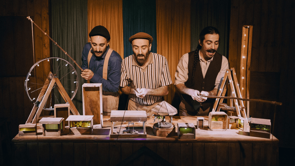 Y de nuevo, El Patio Teatro, realiza un viaje a la memoria de un país, de un tiempo y de unos cómicos en peligro de extinción porque han ido perdiendo fuerza en las carreteras y frente a la competencia de las grandes empresas de ocio que crean en molde y sin autenticidad. A partir de canciones, audios de los protagonistas reales que todavía sobreviven en las ferias de pueblo, la narración a través de objetos y la interpretación de los tres actores que van manipulando en directo mientras recrean momentos de esas nostálgicas ferias, disfrutamos de los últimos cómicos de la legua… Un paso adelante en las producciones de esta compañía especializada en memoria y objetos.