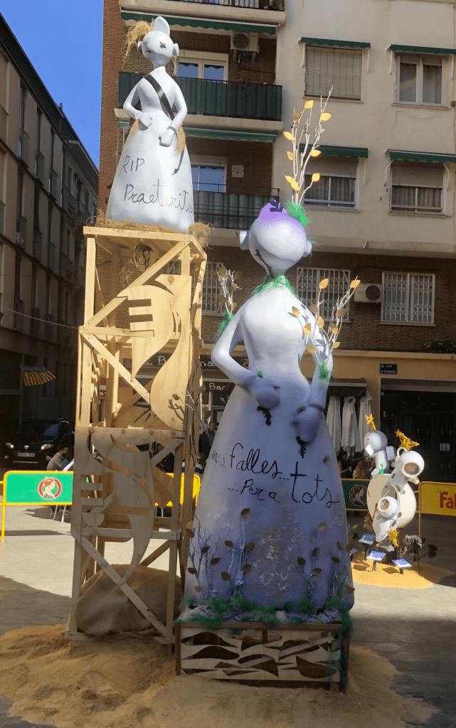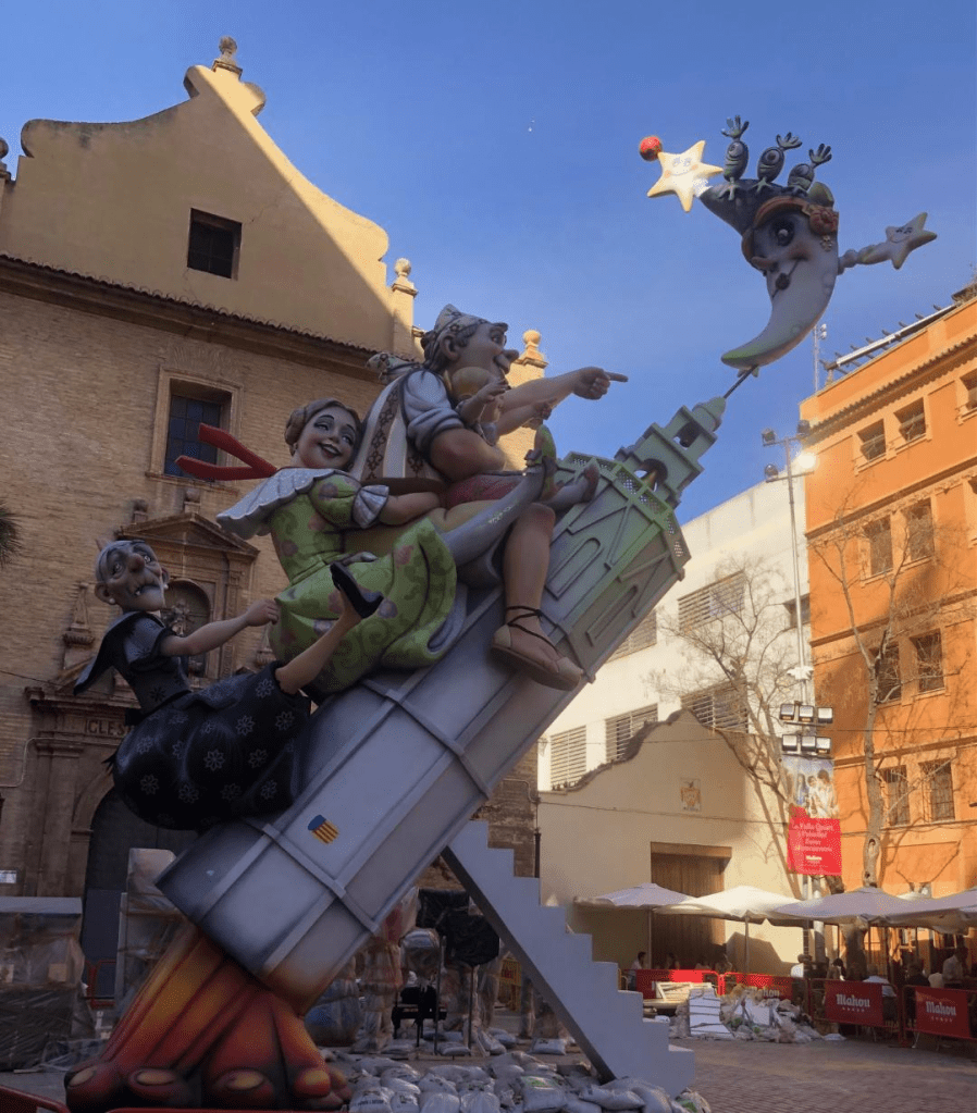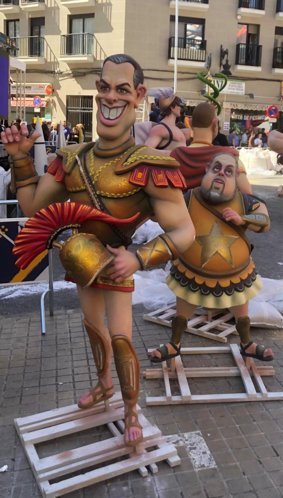 Hace años que no me acercaba a Valencia, a recorrer sus calles durante las Fallas…a perderme callejeando, esperando encontrarme en la siguiente travesía una obra monumental. Entre unas cosas y otras no había podido acercarme hasta hoy…y ha sido curioso el contraste vivido entre lo que recordaba y lo que es… No se si ha disminuido la monumentalidad de las obras de arte, que lo son…o es que me ha pillado el día en que todavía no estaban montadas del todo y por tanto, he tenido una visión diferente al ver, en parte, el proceso del montaje…