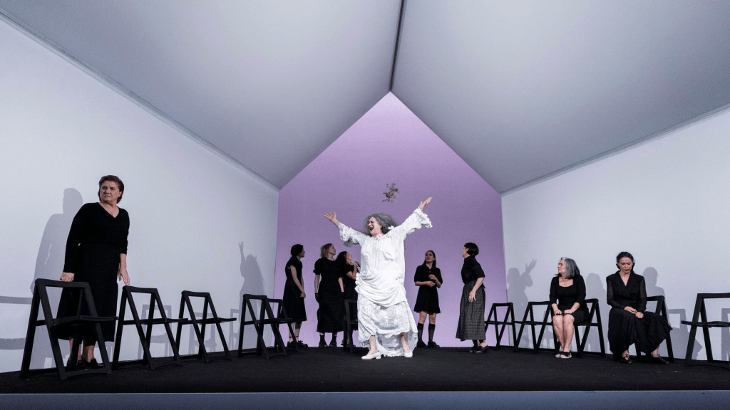 Esta obra es, probablemente, la más representada de Lorca, en España, en los últimos treinta años se han visto versiones que estarán en la memoria del público por siempre. Volver sobre esa casa metáfora del autoritarismo para que conecte con la audiencia de hoy es todo un reto. Lo esencial es la elección del reparto que, en esta ocasión, es muy potente y diverso, y acompañar al texto sin plantear estridencias escénicas, también se ha tratado con cuidado este aspecto y por último, conseguir que plásticamente, donde se sitúe la acción sea un universo que dialogue entre la tradición y la modernidad; la escena es simbólica pero funciona muy bien para ubicar los momentos que plantea la obra. Sin duda, un trabajo potente que indaga en la fragilidad de Bernarda.
