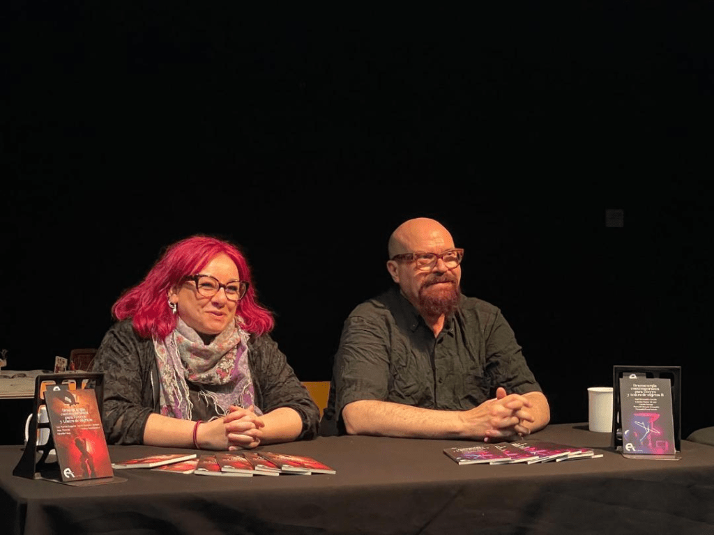 *Y para terminar, Conchita Piña de Editorial Antígona y yo, presentamos el volumen I y II de Dramaturgia contemporánea para teatro de títeres y objetos, con los textos seleccionados en el Certamen «Francisco Nieva» que convoca el Centro Dramático Rural de Mira (Cuenca).