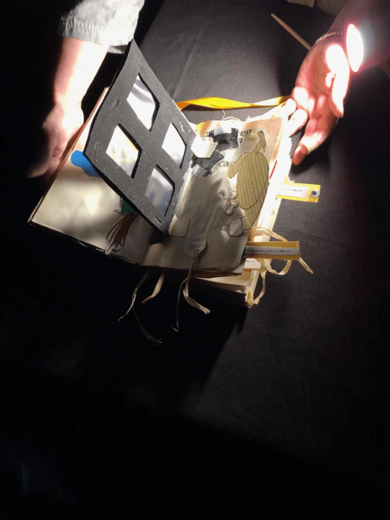 *Durante tres días hicimos un viaje creativo fantástico a la búsqueda del «Libro escénico»…al finalizar el taller, se mostraron los libros realizados en un recorrido por diferentes espacios del Centro…