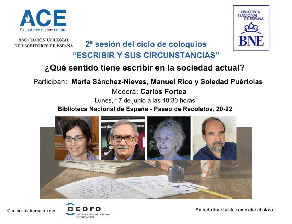 2ª sesión del Ciclo de coloquios: «Escribir y sus circunstancias»
