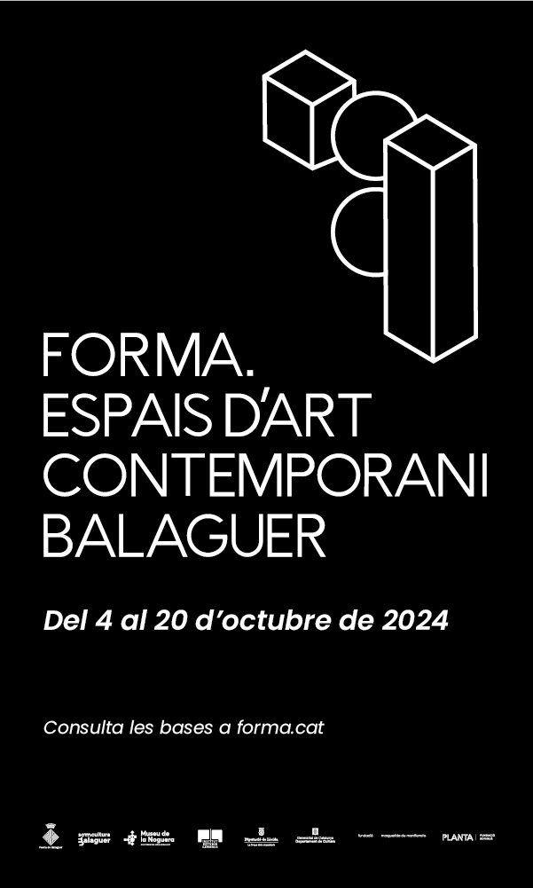| Inscripciones abiertas hasta el 16 de agosto de 2024 Forma Balaguer, espacios de arte contemporáneo es un evento para la creación, difusión y promoción del arte contemporáneo, esencialmente a través de las artes visuales, que pretende conjugar exposiciones, intervenciones y proyectos en espacios de la ciudad capaces de generar formas de diálogo con la ciudadanía. Uno de los principales objetivos es el descubrimiento de las calles, las plazas, los edificios y los equipamientos de la ciudad desde una mirada artística y comprometida. Se quiere que la ciudad sea un museo temporal, en el que tanto los artistas como la ciudadanía hagan suyo el espacio público. Forma se celebra en Balaguer entre el 4 y el 20 de octubre de 2024. La muestra girará en torno a un eje vertebrador temático o conceptual. Para esta edición se propone: Balaguer, ciudad de memoria. La Historia es una invención, y la realidad nos suministra los elementos de esta invención, pero es una invención arbitraria. Hans M. Enzensberger CategoríasINTERVENCIONES EN EL ESPACIO PÚBLICO: las instalaciones o intervenciones se pueden realizar en cualquier formato de expresión artística, y se podrán ubicar en calles, plazas, puentes, o cualquier otro espacio público de la ciudad, sin impedir la libre circulación de personas y vehículos de emergencia.INTERVENCIONES EN EDIFICIOS PATRIMONIALES O HISTÓRICOS: las instalaciones o intervenciones se pueden realizar en cualquier formato de expresión artística, y se podrán ubicar en los diferentes espacios históricos y patrimoniales de la ciudad. |