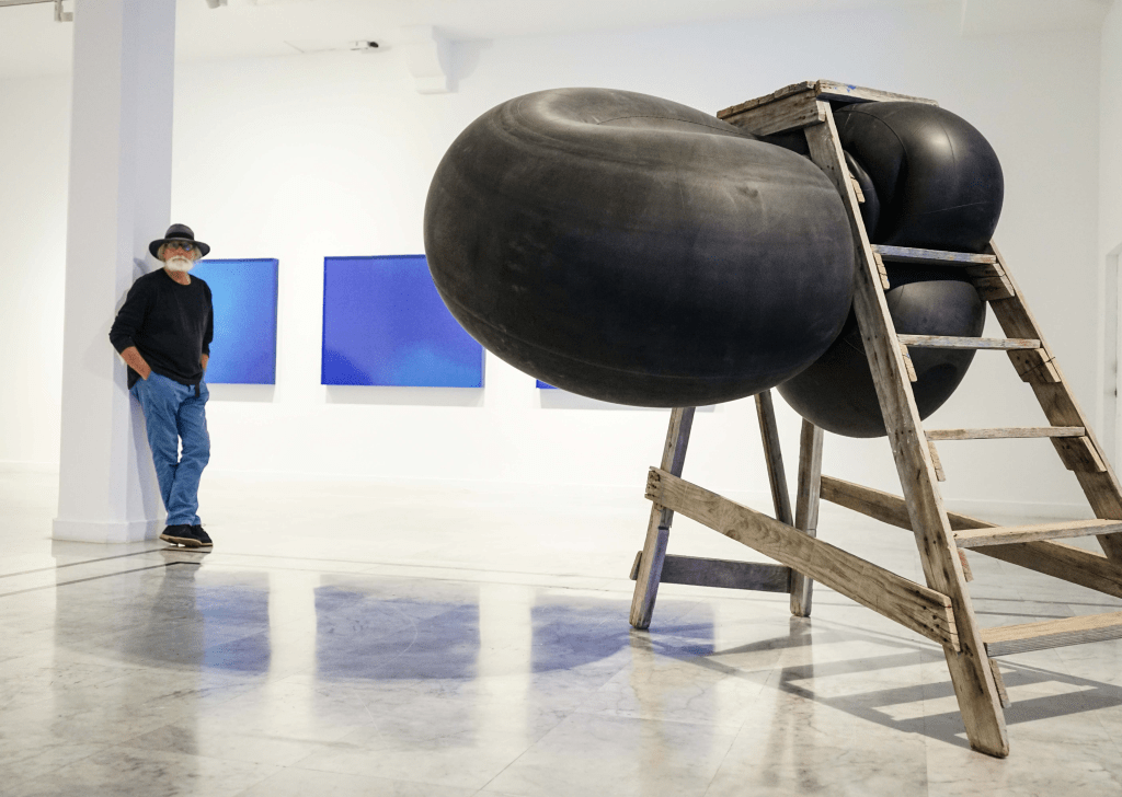 Así, el artista conjuga su preocupación ambiental y social con una práctica creativa experimental, en la que la creación es el propio motivo por el que se ha de crear y du-rante el que se generan las ideas. Un neumático de camión que se pliega y crea una ‘Reserva de aire para políticos’. Libros expandidos, con páginas envejecidas por el propio paso del tiempo, en mirada irónica a las posibles acciones para combatir el cambio climático en el Protocolo de Kyoto del 2000. Una salina expandida en mitad de la sala en la intervención ‘Ustedes son la sal de la tierra’. El compromiso ideológico del autor se conjuga con su admiración por las vanguardias artísticas, que aúpan el mensaje como medio, a través de esculturas e instalaciones que hacen guiños a Duchamp, Piero Manzoni, Yves Klein o Samuel Beckett.