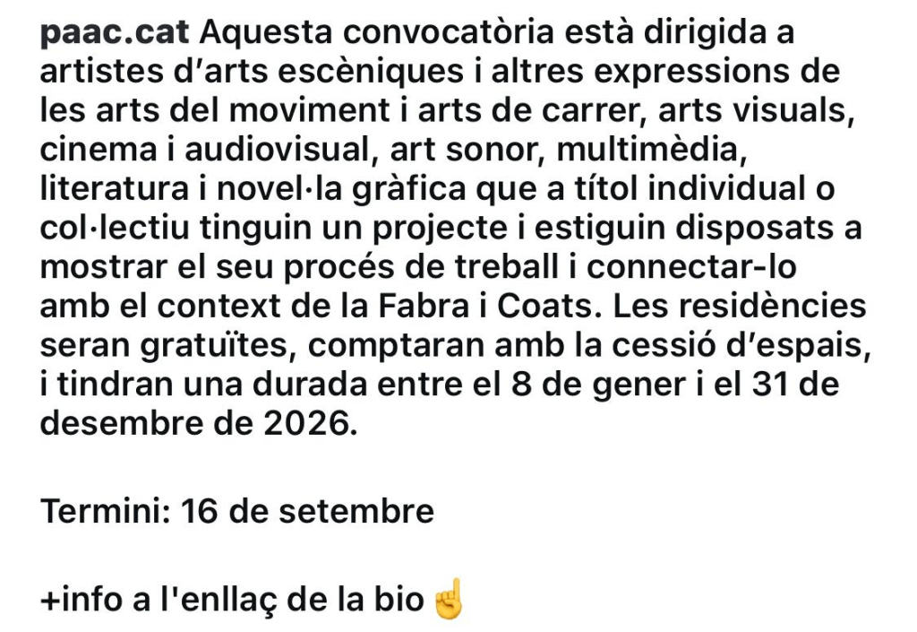 CONVOCATÒRIA DE RESIDÈNCIES ARTISTIQUES A FABRA I COATS.