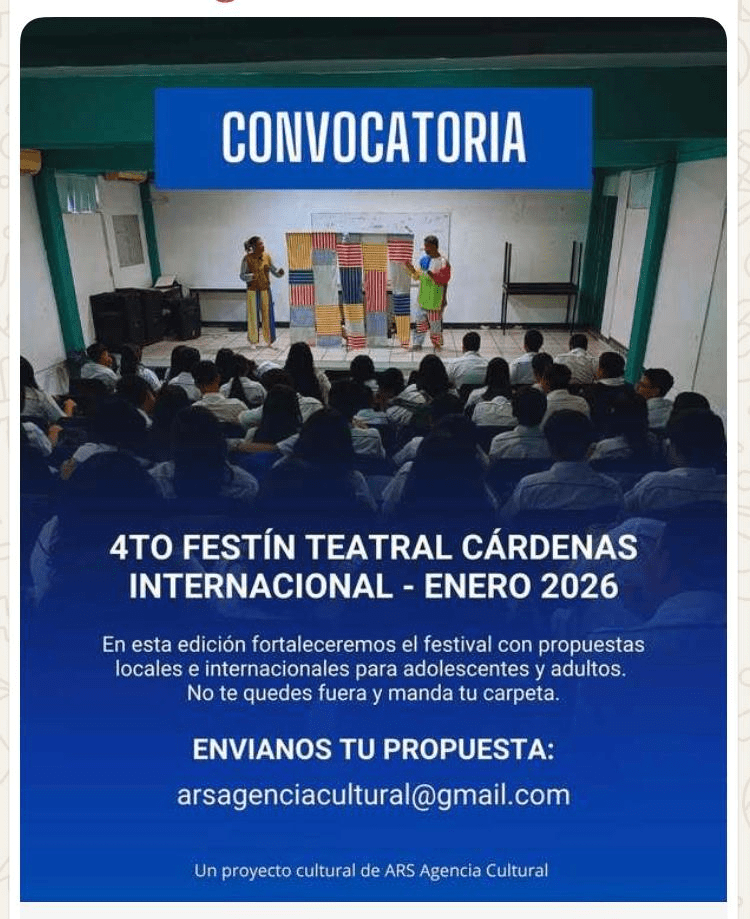 4TO FESTÍN TEATRAL CÁRDENAS INTERNACIONAL-ENERO 2026/CONVOCATORIA.