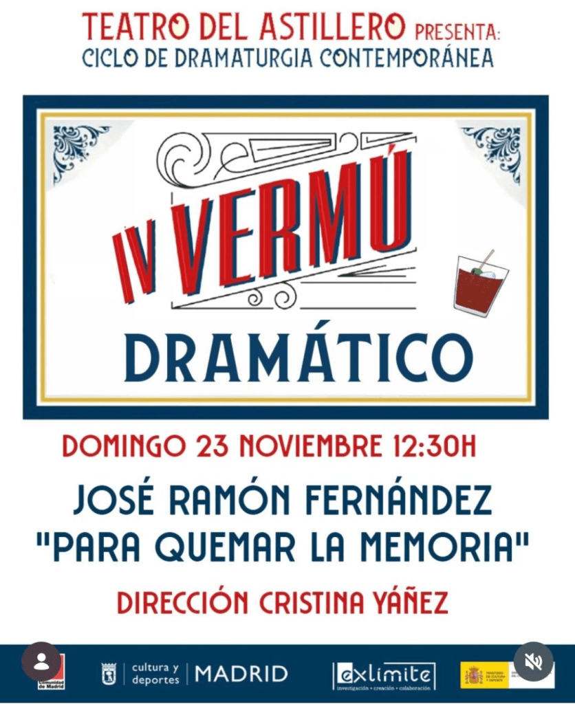 IV VERMÚ DRAMÁTICO: «PARA QUEMAR LA MEMORIA» de JOSÉ RAMÓN FERNÁNDEZ.