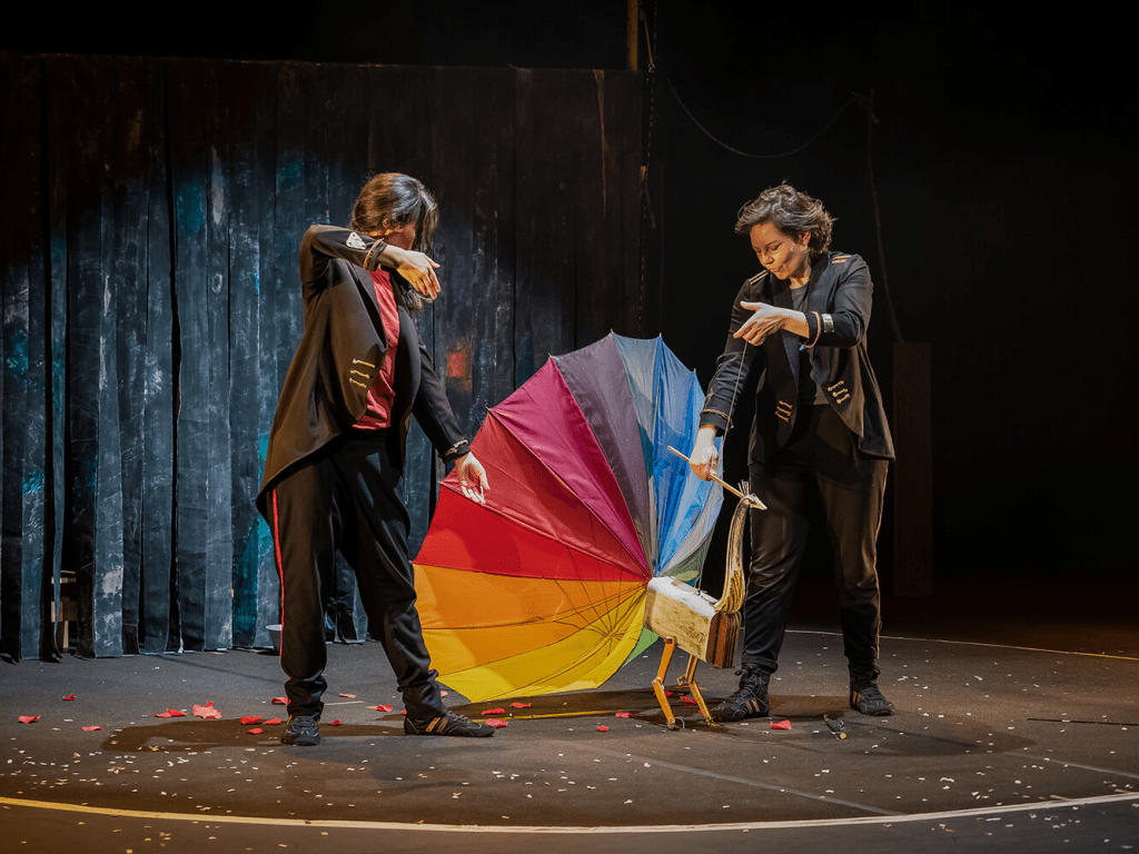 En un circo abandonado, los animales salen a escena para mostrar sus habilidades. Una pieza en la que los títeres-animales son muy originales, por su construcción a partir de objetos cotidianos y por una manipulación singular.