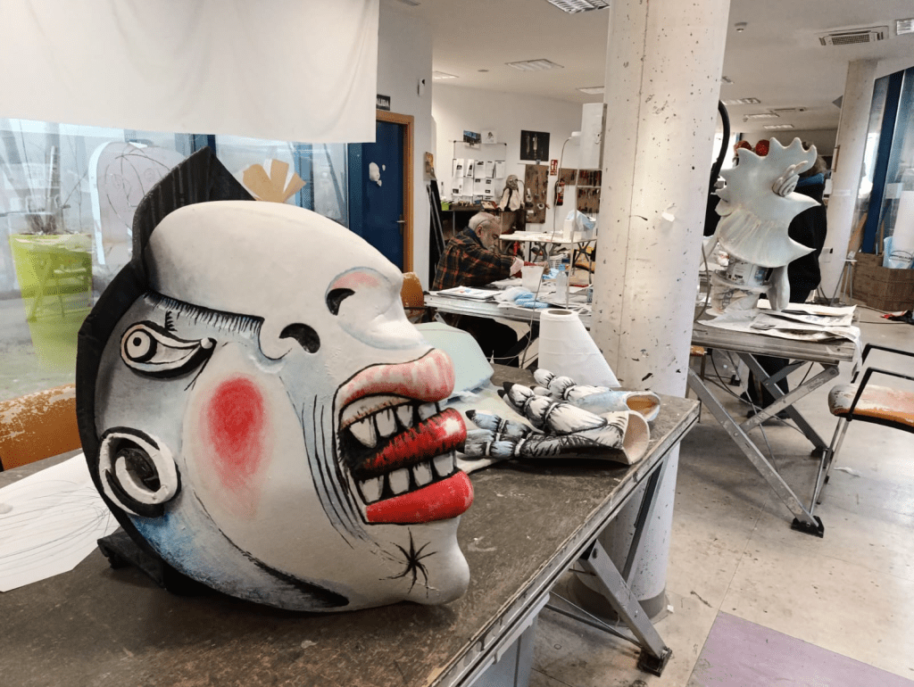 Máscaras gigantes en el gran desfile de carnaval de Alcorcón.
