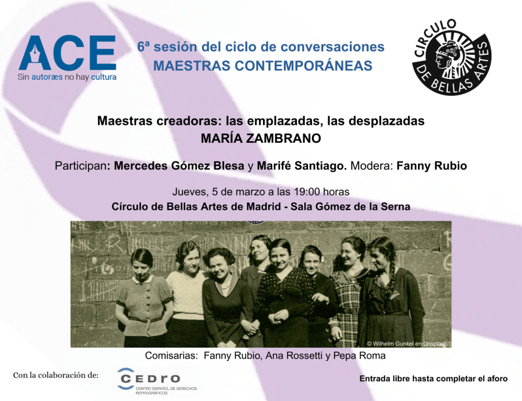 6ª SESIÓN DEL CICLO CONVERSACIONES «MAESTRAS CONTEMPORÁNEAS».
