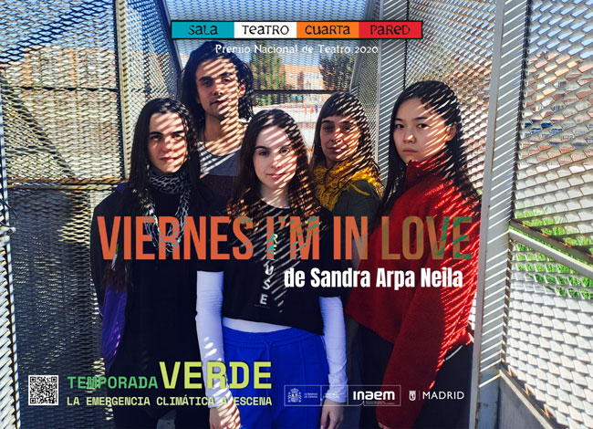 Viernes, I’m in love de Sandra Arpa escrito durante el Laboratorio de Creación Dramatúrgica En Verde 2023, perteneciente al proyecto ETC (Espacio Teatro Contemporáneo). Se trata de la tercera y última entrega de la Temporada Verde: La emergencia climática a escena. La obra se basa en el movimiento @Fridaysforfuture o viernes por el futuro, constituido en su mayoría por jóvenes que reclaman acciones urgentes para evitar una catástrofe ambiental derivada del cambio climático. La protesta nació en Suecia de la mano de la activista Greta Thunberg.